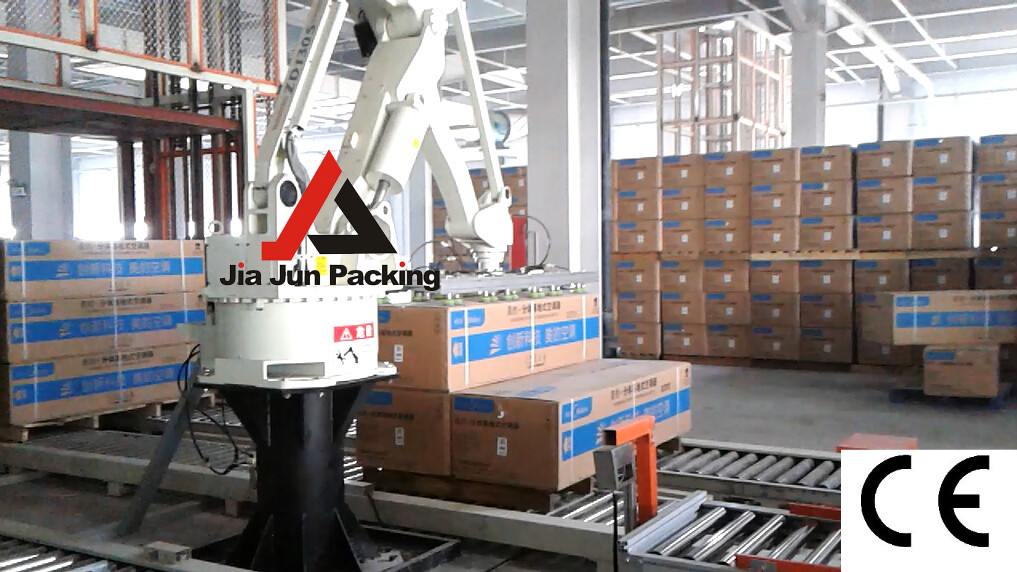 近日,美的空調(diào)的生產(chǎn)車間里,一個(gè)白色的大家伙格外的吸引眼球。他就是嘉俊為美的空調(diào)專業(yè)定制的碼垛機(jī)。只見它輕松的抓取一個(gè)個(gè)包裝好的空調(diào),整齊的堆放在棧板上。待棧板達(dá)到一定高度后,碼垛機(jī)器人自動(dòng)定格,等工作人員替換上新的棧板后碼垛機(jī)自動(dòng)開始工作。實(shí)實(shí)在在地提高了產(chǎn)品質(zhì)量和生產(chǎn)效率。碼垛機(jī)旁,是堆放的整整齊齊的包裝好的空調(diào),相當(dāng)?shù)馁p心悅目。
