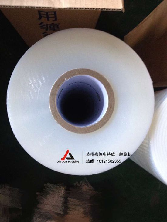 JSK專用膜采用優(yōu)質(zhì)的原材料,較普通機(jī)用纏繞膜有更佳的粘性和韌性,可以保證打包效果更美觀,同時配合JSK機(jī)器全程制繩效果,可以將貨物打包的更緊固(可替代簡單打包帶效果)