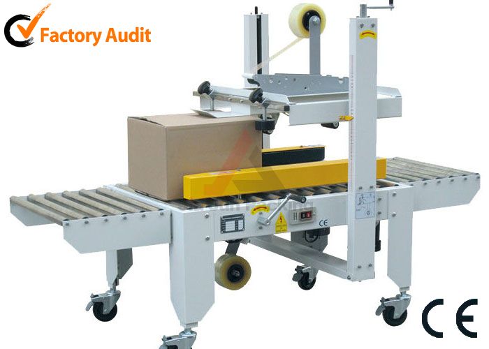 半自動左右驅動折蓋封箱機是以BOPP膠紙為封箱材料,可同時對紙箱進行上下“一”字型封箱,兩側馬達驅動皮帶自動校正、輸送紙箱,封箱時快速平穩(wěn),適用于重較寬紙箱。兩側輔助輪協(xié)助機器封箱時中縫集中不開裂。臺面高度、紙箱寬度高度可自主調節(jié),簡單實用。造型典雅大方,配備刀片防護裝置,避免操作時意外刺傷。機件穩(wěn)固耐用,使用壽命長。機身自帶四個高強度剎車輪,換位工作非常方便。
