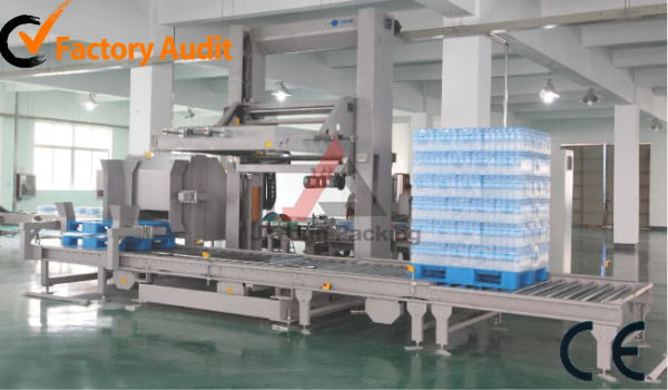 全自動(dòng)碼垛機(jī)是整托盤放入托盤堆放區(qū),開機(jī)后滿足條件及要求后,重托盤輸送裝置首先將堆垛結(jié)束的重托盤送至出口,隨后自動(dòng)上托盤,再自動(dòng)對(duì)流水線上的圓柱平頂型馬口鐵桶或塑料桶進(jìn)行自動(dòng)整理,全自動(dòng)碼垛機(jī)按要求分層堆放到規(guī)定托盤上的自動(dòng)設(shè)備。